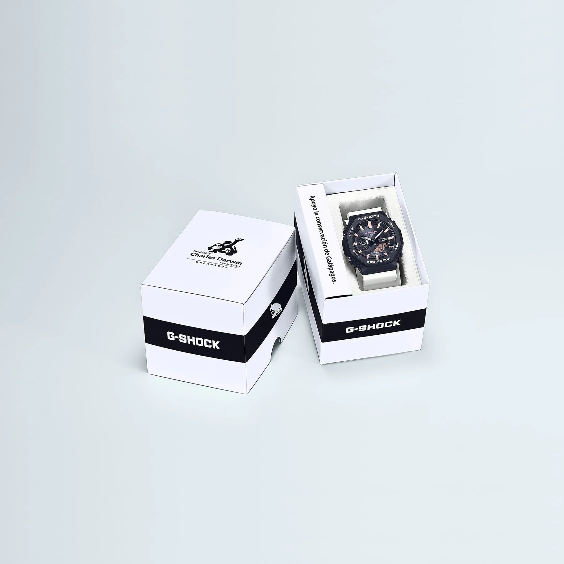 Show your love of the Galápagos and the Charles Darwin Foundation with a G-SHOCK inspired by animals living in these gorgeous islands. This is our third collaboration with the Charles Darwin Foundation, an organisation that engages in environmental conservation activities in the Galápagos Islands, and it features two different partnership watches inspired by the Galápagos marine iguana and the Galápagos penguin. Based on the GAB2100 with its Tough Solar charging and bio-based resin, the environmentally focused functions and materials honour the rich diversity of nature in vivid colour and unique designs. Choose the one that speaks to you — the GAB2100CD-1A4 in two-tone red and black, which are the colours of the Galápagos marine iguana, the only iguana in the world that swims in the sea; or the GAB2100CD-1A7, a charming black-and-white design for the sweet Galápagos penguin, the only penguin in the Equator’s tropical waters. For both models, the case back is engraved with the Charles Darwin Foundation logo, and the band is printed with the message “Apoyo la conservación de Galápagos” (Spanish for “I support Galápagos conservation”). These singular timepieces come in special plastic-free packaging to honour the natural environment in which these spectacular creatures live.